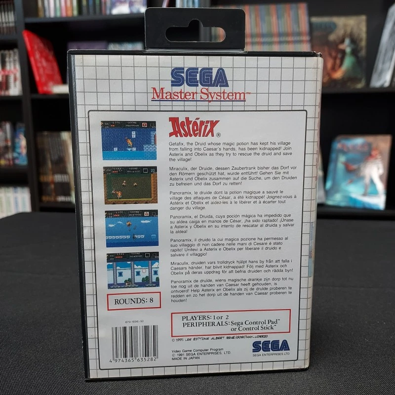 Astérix sur Master System est un jeu de plateforme inspiré de la célèbre bande dessinée. Panoramix, le druide dont la potion magique a sauvé le village des attaques de César à été kidnappé ! Joignez-vous à Astérix et Obélix et aidez-les à le libérer et à écarter tout danger du village !