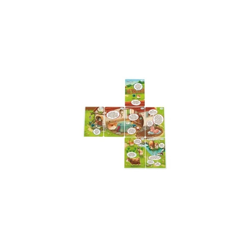 Parlez aux animaux de la ferme et découvrez ce qu’ils savent ! Attention aux fausses pistes, vous devez décider quelles cartes peuvent vous aider à résoudre l’affaire de la tarte disparue… Les joueurs choisissent les cartes et les assemblent pour dresser un tableau complet de ce qui est arrivé à cette fameuse tarte. Vous devrez répondre à quelques questions et décrire ce qui s’est passé et pourquoi.