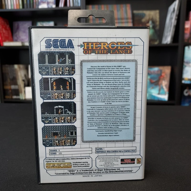 Dans le jeu de rôle Heroes of the Lance sur Master System, prenez la tête d’une équipe de huit héros et partez à la recherche des disques de Mishakal dans une cité en ruine. Un seul héros peut être contrôlé à la fois et chacun possède ses propres caractéristiques au combat. En privilégiant la force ou la magie, vous pouvez donc créer votre propre style de jeu par le biais des différentes combinaisons.