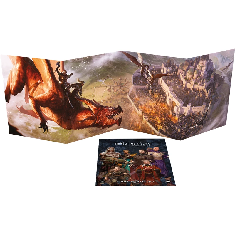 En plus de mettre les joueurs dans l’ambiance de Rôle’n Play grâce à une magnifique illustration signée Pascal Quidault, l’Écran de la meneuse rassemble en quatre volets une synthèse des règles les plus utiles à la MJ. Le pack inclut aussi le Compendium de PNJ, un livret de 32 pages contenant les profils de près de 70 types de personnages non-joueurs, du berserker au maître espion en passant par l’ovate, qui viendront compléter le bestiaire.